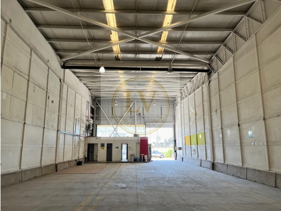 Bodega en planta libre de 325,58 m2 de bodegaje más 63,18 m2 de oficina, cocina y baños.